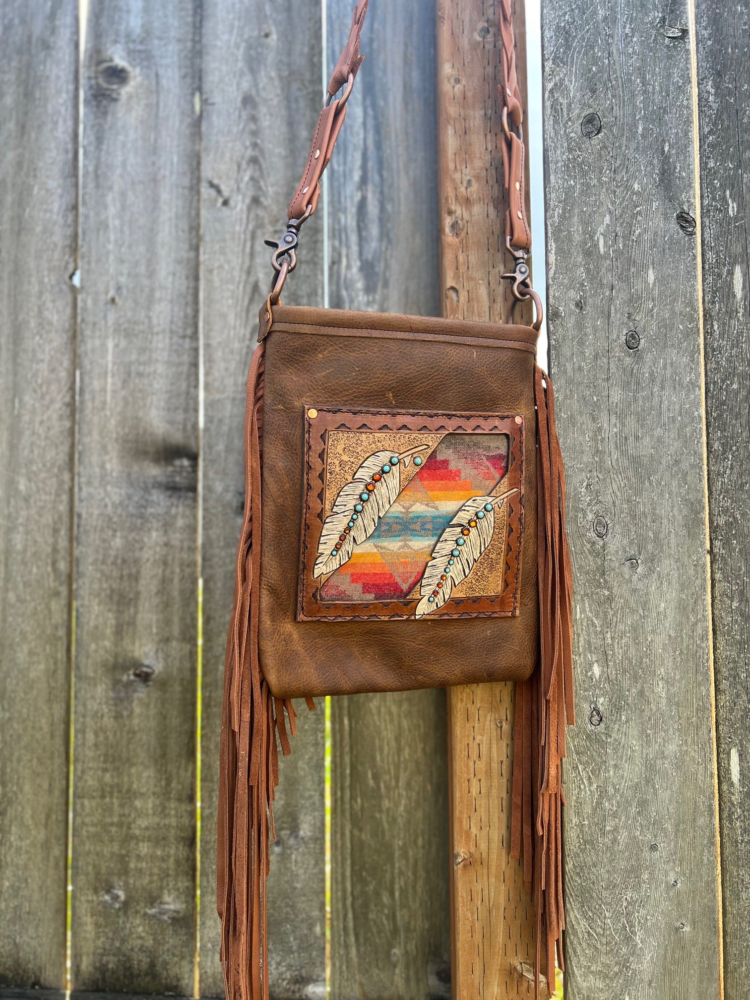 Handmade leather purse like no other! Crafted from premium oil tanned hide, this purse boasts a stunning Feather design that has been meticulously hand-tooled and painted to perfection.